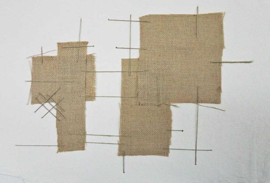 Antonio Basso. Space Occupancy #2. Burlap sewed on 600grs paperĀ  (36x51cms)